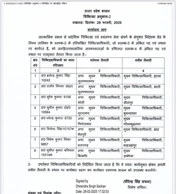 उत्तरप्रदेशगोरखपुर UP में 8 जिलों के CMO का तबादला. By www.ujala24x7.com - 1 March 2025 UP में 8 जिलों के CMO का तबादला। Post Views: 459