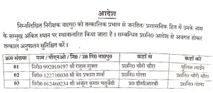 उत्तरप्रदेशगोरखपुर एसएसपी डॉ. गौरव ग्रोवर का बड़ा एक्शन: चौरी चौरा में पुलिस फेरबदल, वेदप्रकाश शर्मा बने नए थानेदार। By www.ujala24x7.com - 9 April 2025 एसएसपी डॉ. गौरव ग्रोवर का बड़ा एक्शन: चौरी चौरा में पुलिस फेरबदल,चौरी चौरा में बड़ा फेरबदल! गोरखपुर।थानेदार लाइन हाजिर, तीन इंस्पेक्टर सहित कई दरोगा इधर-उधर। वेदप्रकाश शर्मा को मिली चौरी चौरा की कमान, डॉ. गौरव ग्रोवर का सख्त एक्शन।” Post Views: 349