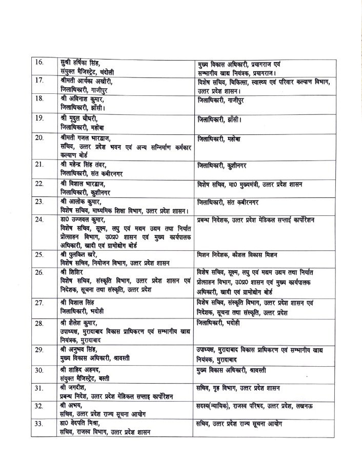 यूपी में तबादला एक्सप्रेस: 33 IAS बदले, विशाल सिंह नए सूचना निदेशक।
