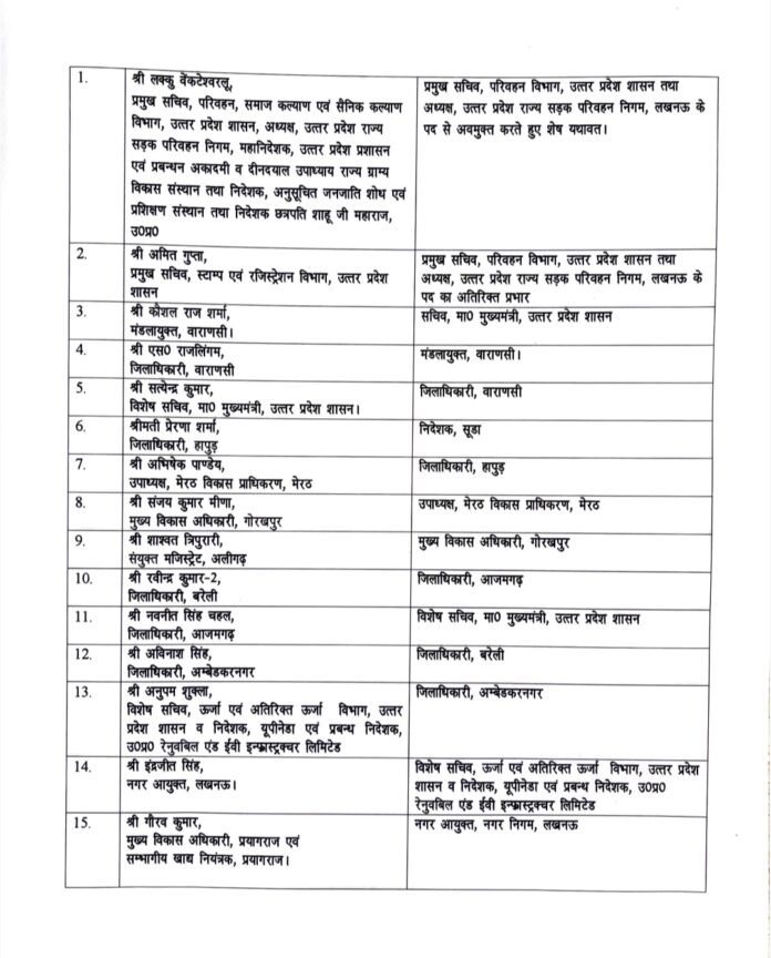 वाराणसी में मंडलायुक्त कौशल राज शर्मा को मुख्यमंत्री का सचिव बनाया गया, जबकि डीएम एस. राजलिंगम को वाराणसी का नया मंडलायुक्त नियुक्त किया गया। यह दूसरा अवसर है जब वाराणसी के डीएम को मंडलायुक्त बनाया गया है। सत्येंद्र कुमार, जो मुख्यमंत्री के विशेष सचिव थे, अब वाराणसी के नए डीएम होंगे।