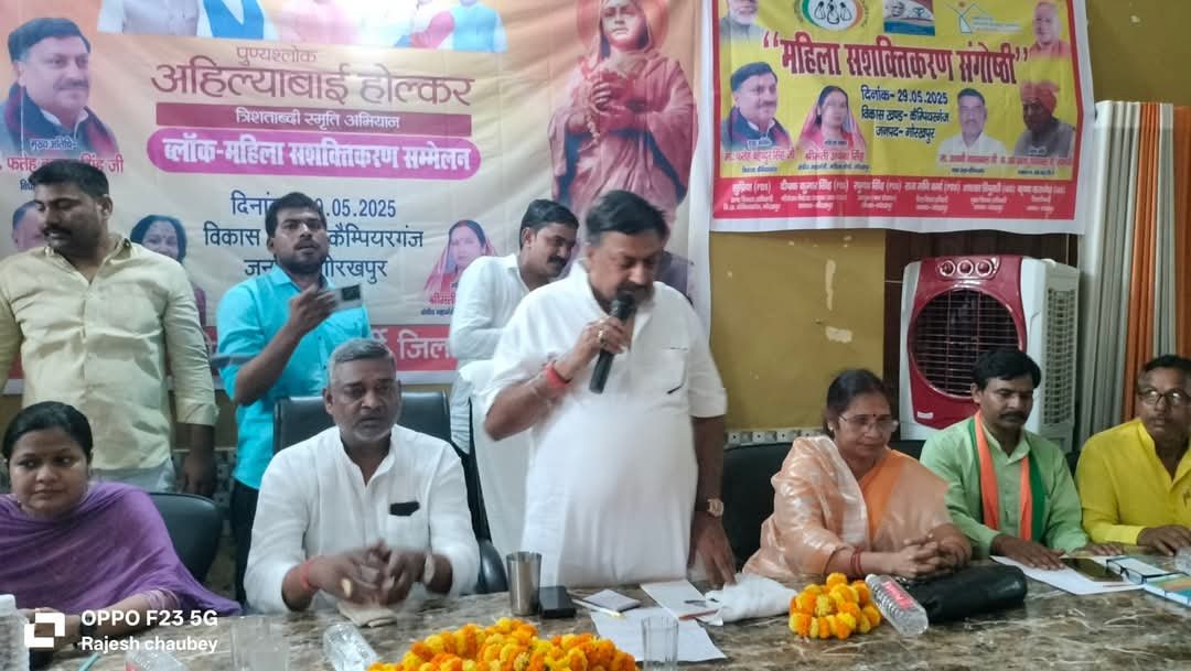 गोरखपुर के कैंपियरगंज ब्लॉक सभागार में रानी अहिल्याबाई होलकर की 300वीं जन्म जयंती के उपलक्ष्य में महिला सशक्तिकरण अभियान के तहत एक भव्य सम्मेलन आयोजित हुआ। कार्यक्रम में मुख्य अतिथि कैंपियरगंज विधायक फतेह बहादुर सिंह और क्षेत्रीय महामंत्री (महिला मोर्चा) अर्चना सिंह की अगुवाई में रानी अहिल्याबाई के योगदान को याद किया गया। सम्मेलन का आयोजन ब्लॉक प्रमुख अश्विनी जायसवाल और आईटी सेल विधानसभा संयोजक राजेश चौबे ने किया।