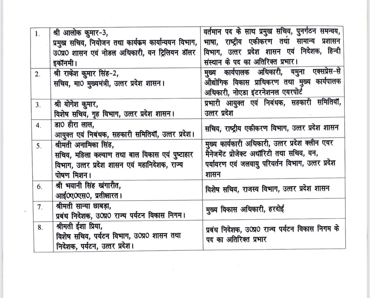 यूपी में 8 आईएएस अधिकारियों का तबादला, नई जिम्मेदारियां सौंपी गईं।