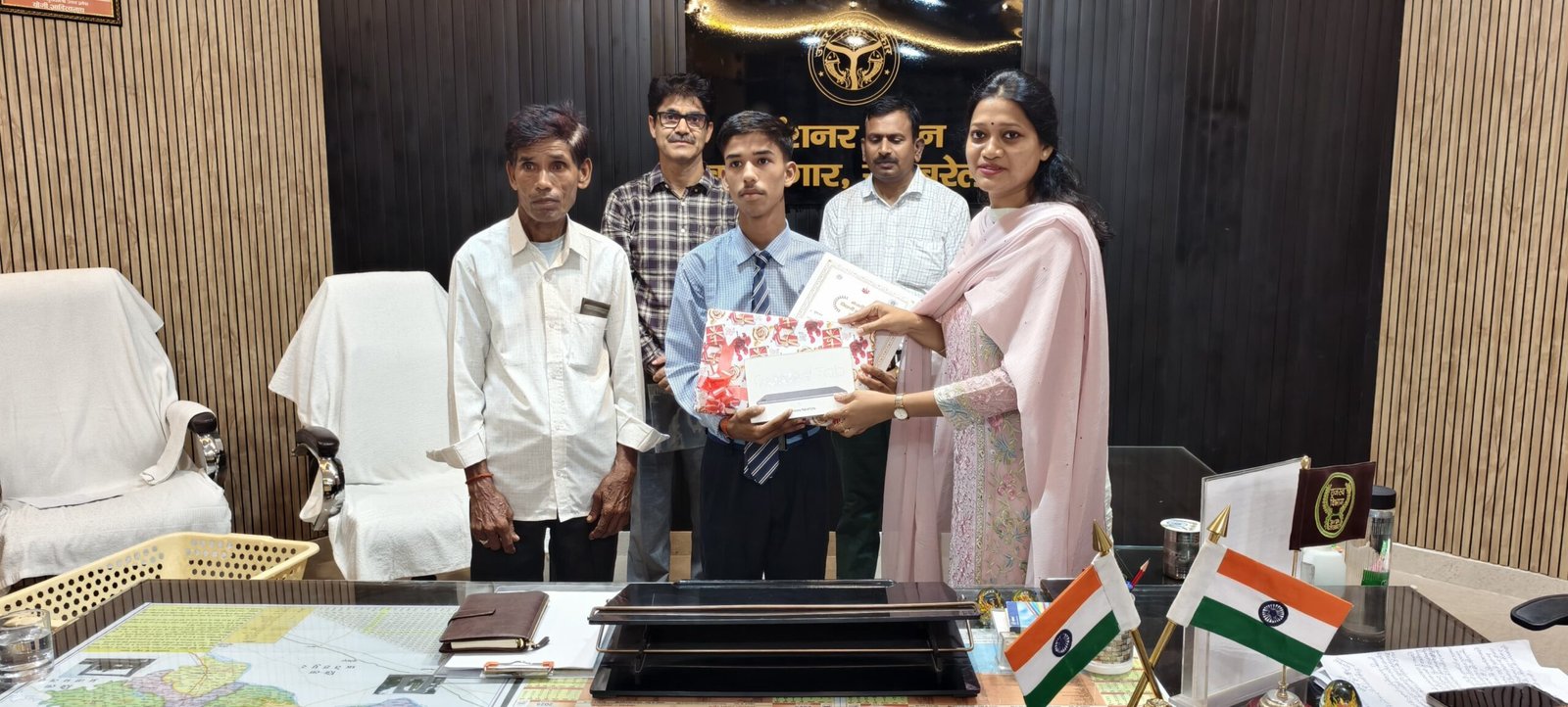 रायबरेली।।मंगलवार को जिलाधिकारी हर्षिता माथुर ने कलेक्ट्रेट कार्यालय में एक भावनात्मक और गर्वमयी समारोह में राजकीय इंटर कॉलेज (जी.आई.सी.) के छात्र सुरेश पाल को सम्मानित किया। माध्यमिक शिक्षा परिषद द्वारा आयोजित 2025 की हाईस्कूल परीक्षा में 565/600 अंक (94.17%) प्राप्त कर जनपद में नवम और विद्यालय में प्रथम स्थान हासिल करने पर सुरेश को टैबलेट और प्रशस्ति पत्र प्रदान किया गया। यह उपलब्धि न केवल छात्र के लिए, बल्कि स्कूल के लिए भी गौरव का क्षण है।