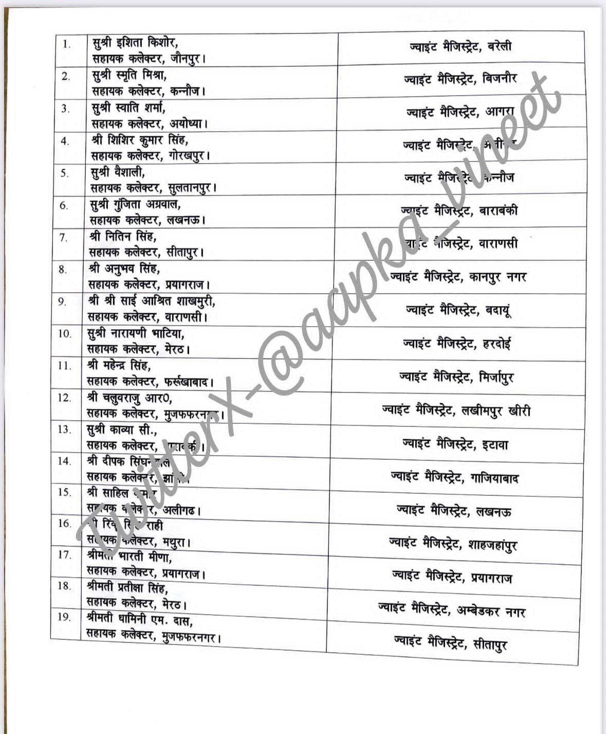 1. सुश्री इशिता किशोर – सहायक कलेक्टर, जौनपुर; ज्वाइंट मजिस्ट्रेट, बरेली।