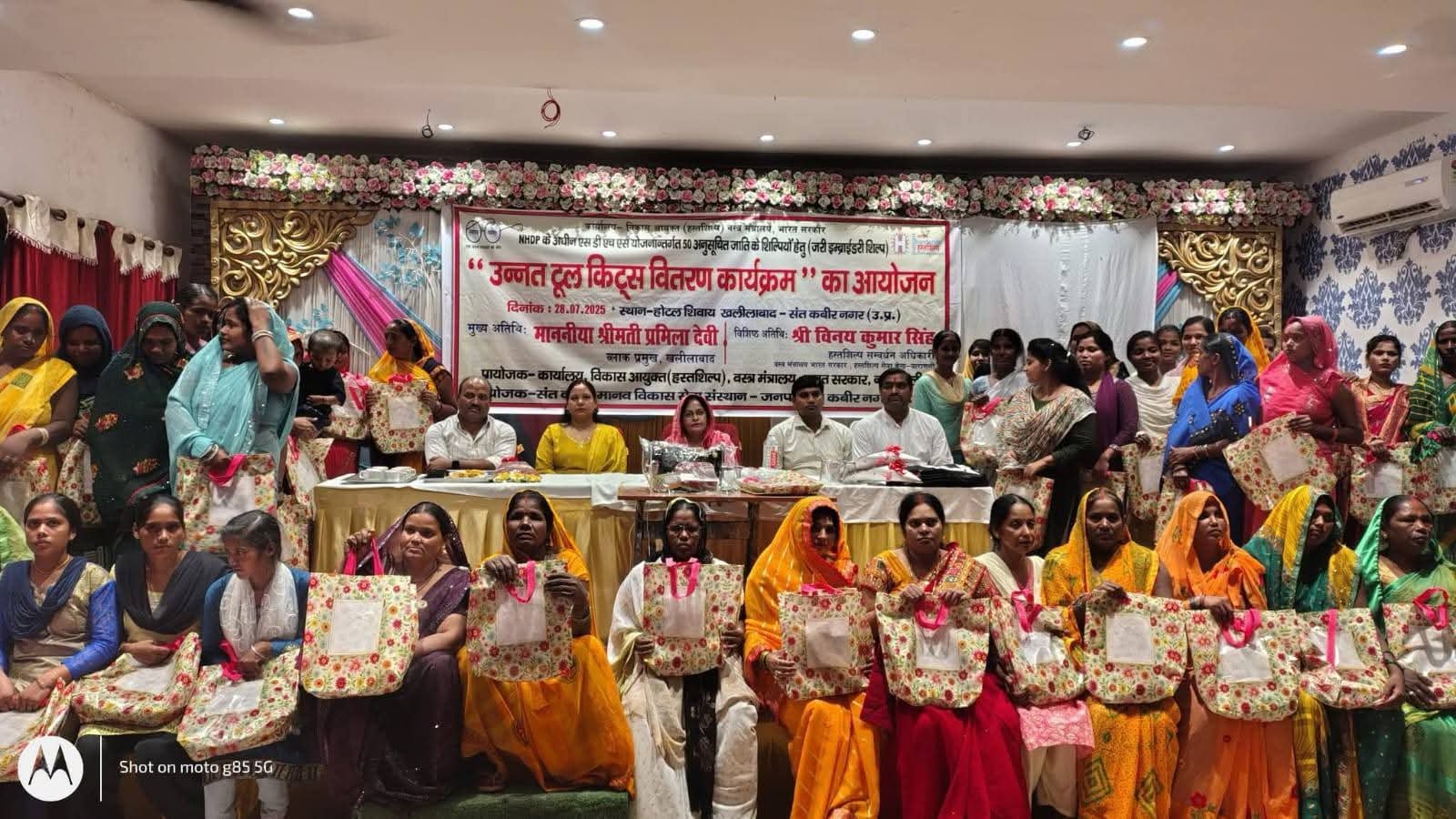 संतकबीरनगर, खलीलाबाद में विकास आयुक्त (हस्तशिल्प), वस्त्र मंत्रालय, भारत सरकार द्वारा प्रायोजित और संतकबीर मानव विकास सेवा संस्थान, मगहर के सहयोग से आयोजित एनएचडीपी योजनांतर्गत ज़री एम्ब्रायडरी शिल्प के 50 अनुसूचित जाति के हस्तशिल्पियों को उन्नत टूलकिट्स और सिलाई मशीनों का वितरण किया गया। होटल शिवाय, खलीलाबाद में आयोजित इस कार्यक्रम में मुख्य अतिथि खलीलाबाद ब्लॉक प्रमुख श्रीमती प्रमिला देवी और उनके प्रतिनिधि नित्यानंद ने शिरकत की।