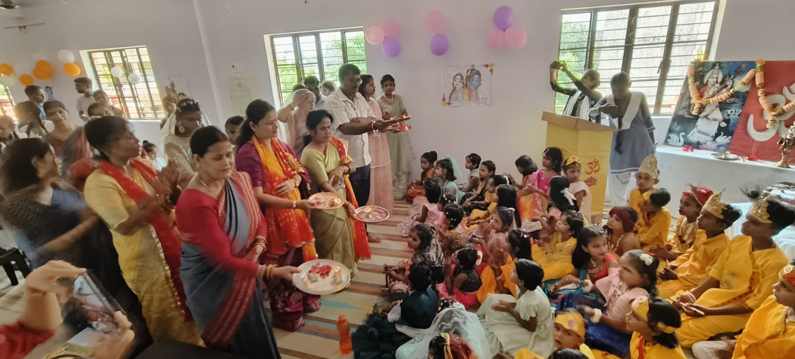 कार्यक्रम में बच्चों ने भक्ति भरे गीत और भाषण प्रस्तुत किए, जिसने माहौल को भक्तिमय बना दिया। प्रत्येक कक्षा से एक-एक जोड़ी ने राधा-कृष्ण की वेशभूषा में अपनी प्रतिभा का प्रदर्शन किया। श्रुति शुक्ला ने बच्चों को संबोधित करते हुए कहा, “भगवान श्रीकृष्ण के कर्मयोग से प्रेरणा लेकर हमें अपने जीवन में नित्य निखार लाना चाहिए। स्वयं से प्रतिस्पर्धा करें, ताकि हर दिन बेहतर बन सकें।”