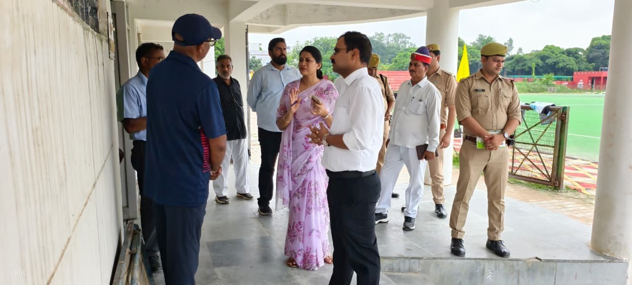 स्टेडियम का कायाकल्प: डीएम ने लिया निर्माण कार्यों का जायजा