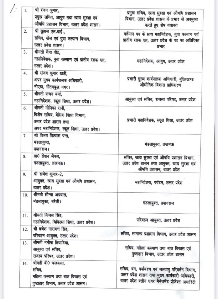 यूपी में 16 IAS का तबादला: लखनऊ, प्रयागराज में नए मंडलायुक्त