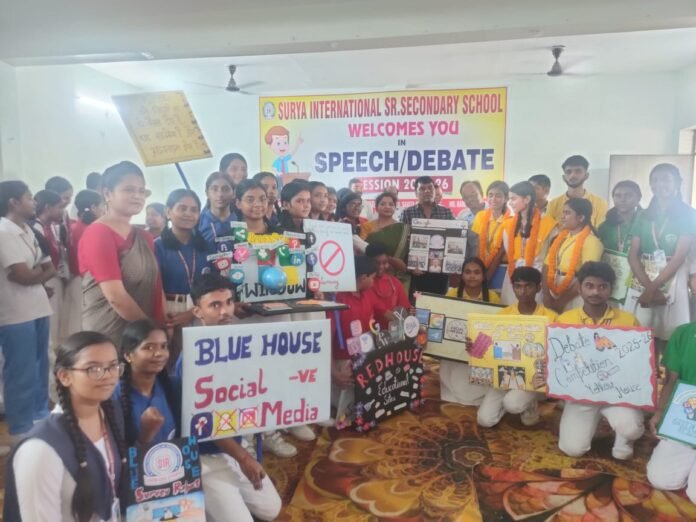 संतकबीरनगर। सूर्या सीनियर सेकेंडरी स्कूल, खलीलाबाद में शनिवार को वाद-विवाद प्रतियोगिता आयोजित हुई। कक्षा 9 से 12 के छात्र-छात्राओं ने “समाज में सोशल मीडिया के सकारात्मक और नकारात्मक प्रभाव” विषय पर विचार रखे। येलो, ग्रीन, रेड और ब्लू हाउस की टीमों ने हिस्सा लिया। कुछ छात्रों ने सोशल मीडिया को समाज के उत्थान का साधन बताया, जबकि अन्य ने इसकी बुराइयों पर जोर दिया।