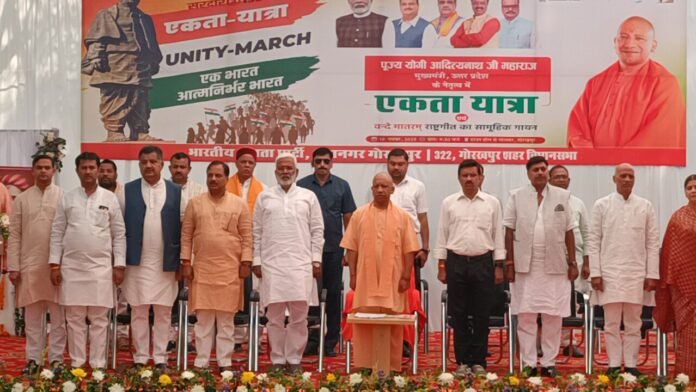 गोरखपुर। सरदार वल्लभभाई पटेल की 150वीं जयंती और ‘वंदे मातरम्’ के 150 वर्ष पूरे होने पर सोमवार को गोरखपुर राष्ट्रभक्ति की लहर में डूब गया। मुख्यमंत्री योगी आदित्यनाथ ने लक्ष्मी पार्क में रानी लक्ष्मीबाई की प्रतिमा पर माल्यार्पण कर श्रद्धांजलि दी। परिसर ‘भारत माता की जय’ और ‘वंदे मातरम्’ के नारों से गूंज उठा।