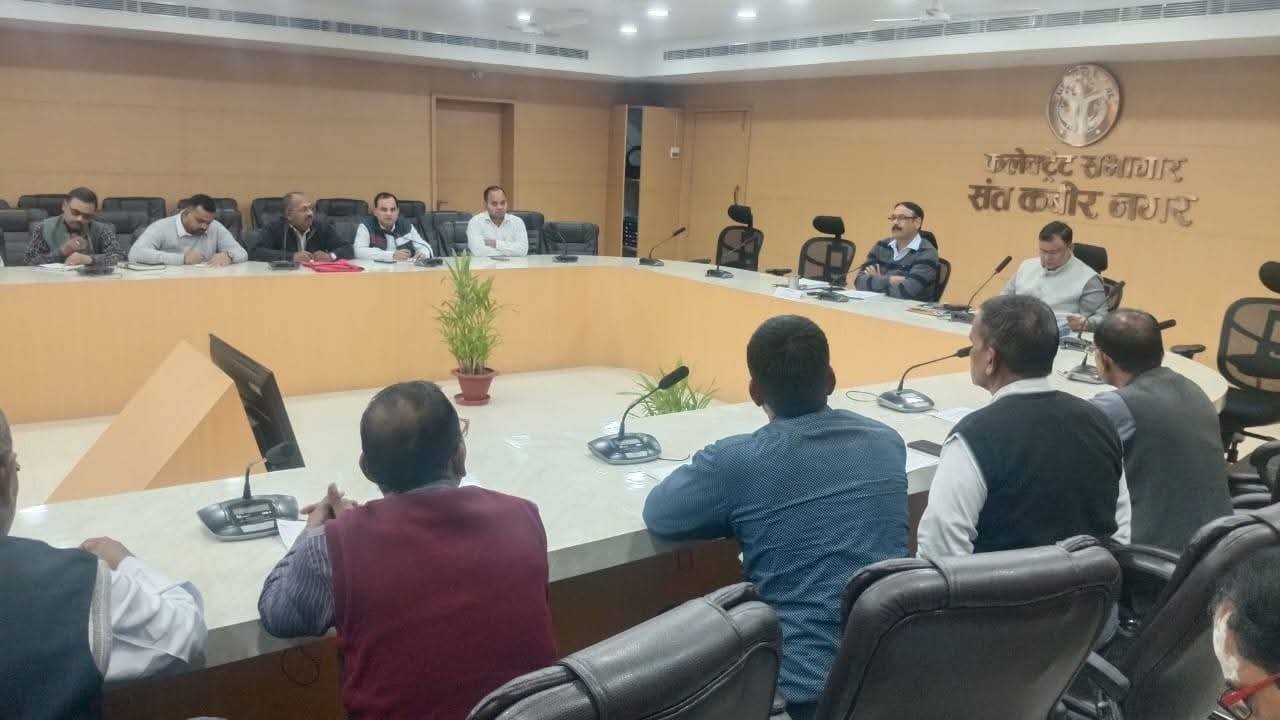 संतकबीरनगर। जिलाधिकारी आलोक कुमार की अध्यक्षता में शुक्रवार को कलेक्ट्रेट सभागार में तामेश्वरनाथ धाम कॉरिडोर निर्माण की प्रगति समीक्षा बैठक आयोजित हुई। बैठक में संबंधित अधिकारी, लेखपाल, ग्राम प्रधान तथा स्थानीय काश्तकार बड़ी संख्या में उपस्थित रहे।