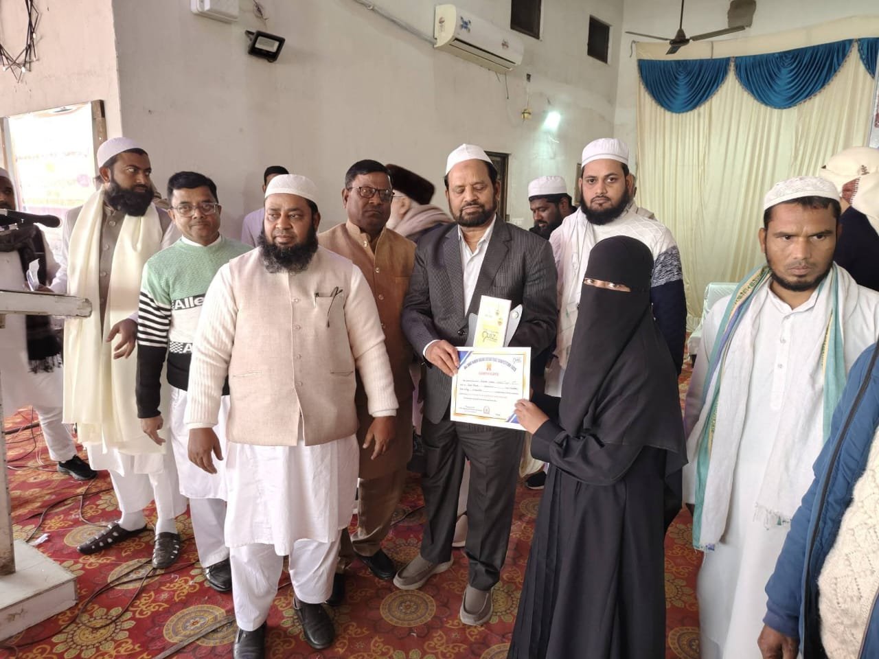 यह कार्यक्रम शिक्षा के प्रचार-प्रसार और सामाजिक कल्याण की दिशा में एक महत्वपूर्ण कदम है, जो युवा पीढ़ी को नई दिशा और प्रेरणा प्रदान करता है।”कार्यक्रम की अध्यक्षता कर रहे मुफ़्ती अफरोज ने सभी विशिष्ट अतिथियों का आभार व्यक्त करते हुए कहा, “इस तरह के आयोजन का मुख्य उद्देश्य बच्चों में शिक्षा के प्रति जागरूकता पैदा करना है। इससे प्रतिस्पर्धा बढ़ती है और बच्चे अपनी प्रतिभा को और निखार पाते हैं।”इस अवसर पर मौलाना जहीर अनवर कासमी, मुफ्ती तौहीद अहमद, मुफ्ती मोहम्मद अहमद, पूर्व चेयरमैन नूरुज्जमा अंसारी, पीस पार्टी के राष्ट्रीय महासचिव अफरोज बादल, यासिर निजाम, पीस पार्टी युवा जिला अध्यक्ष अंज़र सिद्दीकी सहित कई गणमान्य उपस्थित रहे।कार्यक्रम में मेधावी छात्र-छात्राओं ने उत्साहपूर्वक भाग लिया।