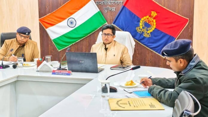 संतकबीरनगर। नव वर्ष 2026 की पूर्व संध्या पर जनपद में शांति, सुरक्षा और कानून-व्यवस्था बनाए रखने के लिए पुलिस अधीक्षक संदीप कुमार मीणा ने पुलिस लाइन सभागार में हाई अलर्ट मीटिंग आयोजित की। बैठक में समस्त क्षेत्राधिकारी, थाना प्रभारी, चौकी प्रभारी एवं संबंधित अधिकारी-कर्मचारी गूगल मीट के माध्यम से जुड़े।