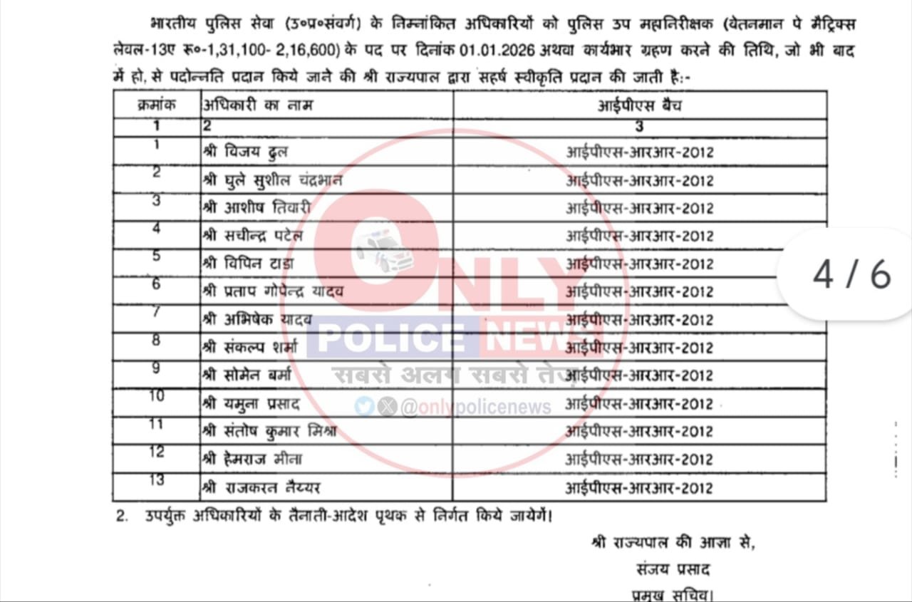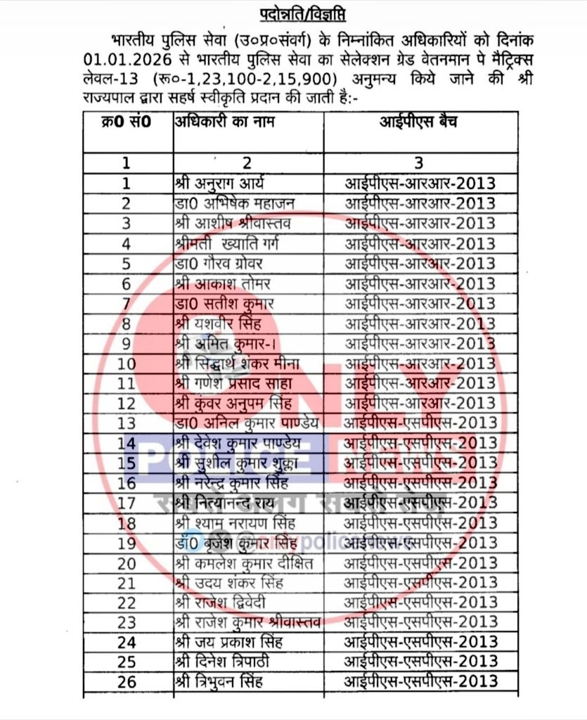 इसके अलावा 2013 बैच के 28 आईपीएस अफसरों को सिलेक्शन ग्रेड प्रदान किया गया है, जो उनकी आगे की पदोन्नति की राह को सुगम बनाएगा।