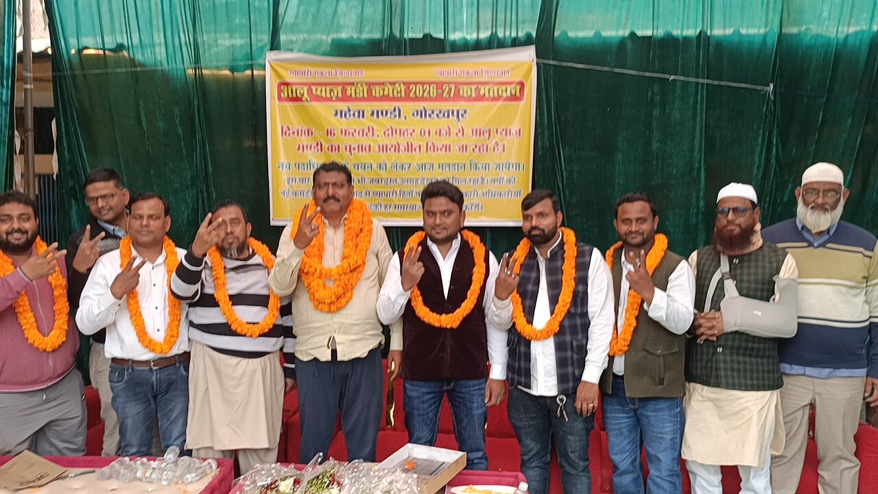गोरखपुर। पूर्वांचल की सबसे बड़ी थोक मंडी महेवा में आलू-प्याज मंडी कमेटी 2026 का चुनाव शांतिपूर्ण और सकुशल ढंग से संपन्न हो गया। 26-27 फरवरी को आयोजित मतदान में कमेटी सदस्यों की देखरेख में लगभग 45 रजिस्टर्ड फर्मों के सदस्यों ने हिस्सा लिया। चुनाव के परिणामों में वली मोहम्मद को अध्यक्ष, आसिफ अय्यूब को महामंत्री और मुकेश कुमार को उपाध्यक्ष चुना गया। कुल आठ पदों पर नए प्रतिनिधियों का चयन हुआ।