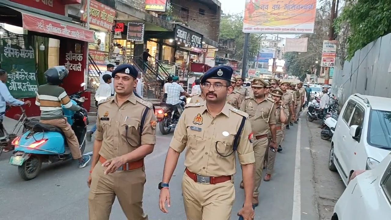 फ्लैग मार्च में इंस्पेक्टर अवधेश तिवारी, नखास चौकी इंचार्ज दुर्गेश कुमार वैश्य, दुर्गाबाड़ी चौकी इंचार्ज संदीप कुमार चौधरी सहित कई अधिकारी और जवान शामिल रहे।