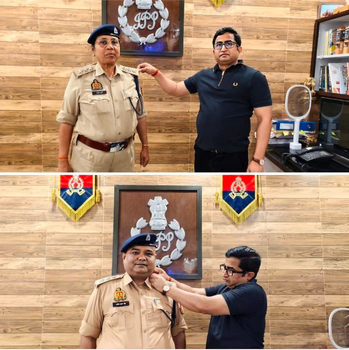 संतकबीरनगर। पुलिस अधीक्षक संदीप कुमार मीना ने निरीक्षक से डीएसपी (Deputy Superintendent of Police) पद पर पदोन्नत हुए अशोक कुमार सिंह और सुश्री सरोज शर्मा को स्टार लगाकर सम्मानित किया।
